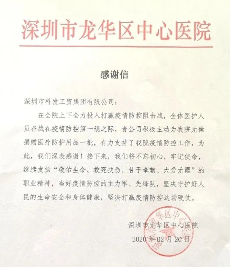 科發(fā)集團(tuán)向新田社區(qū)捐贈愛心善款,并委托新田社區(qū)緊急采購了一批醫(yī)療物資,于2020年2月26日送達(dá)龍華區(qū)中心醫(yī)院,為戰(zhàn)斗在一線的白衣戰(zhàn)士們助力。