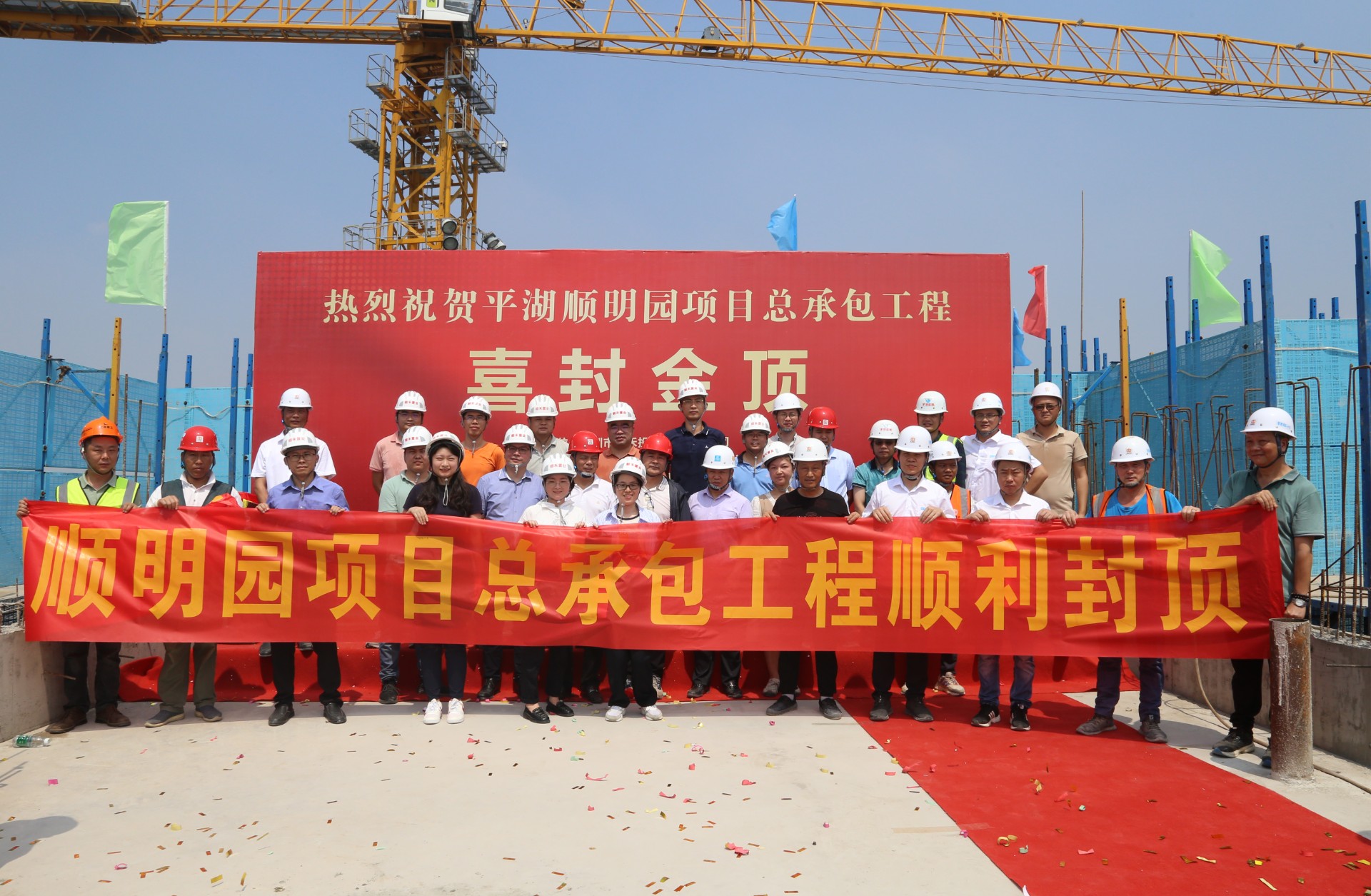 5月30日上午,順明園項(xiàng)目隆重舉行了1棟主體結(jié)構(gòu)封頂儀式。隨著最后一斗水泥由塔吊車?yán)鹕眨椭廖菝鏄琼?,現(xiàn)場(chǎng)禮炮齊鳴,1棟主體結(jié)構(gòu)正式封頂大吉。集團(tuán)副董事長(zhǎng)、總包單位負(fù)責(zé)人、監(jiān)理單位負(fù)責(zé)人以及順明園項(xiàng)目全體人員等參加了封頂儀式,共同見證了這一美好時(shí)刻。