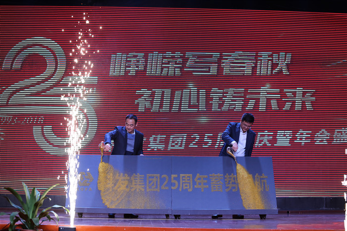 董事長(zhǎng)胥梓斌先生致新年賀詞,慷慨激昂的講話贏得了現(xiàn)場(chǎng)陣陣熱烈掌聲。董事長(zhǎng)和總裁共同啟動(dòng)鎏金沙儀式,象征新征程即將開始,科發(fā)集團(tuán)將揚(yáng)帆起航,駛向下一個(gè)更加輝煌的二十五年。