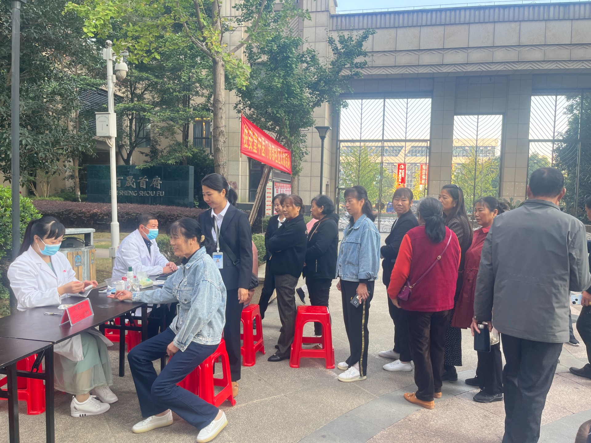 在活動(dòng)現(xiàn)場(chǎng),物業(yè)和醫(yī)護(hù)人員分工合作,客服部張玲玲主管帶領(lǐng)部門人員正確引導(dǎo)業(yè)主老人們選擇合適的檢查項(xiàng)目列隊(duì),醫(yī)護(hù)人員為老人們免費(fèi)測(cè)血壓、血糖、頸椎保健等服務(wù)。醫(yī)生們結(jié)合老人的身體情況提出相應(yīng)的醫(yī)療指導(dǎo)與意見,并對(duì)老人們的日常保健和科學(xué)用藥等進(jìn)行指導(dǎo),幫助居民更好地掌握基本健康知識(shí),增強(qiáng)居民的健康意識(shí)和疾病預(yù)防知識(shí)。其間,物業(yè)還特意給老人每人派發(fā)一份金絲菊花茶小禮品和發(fā)到家超市38減5元禮品。