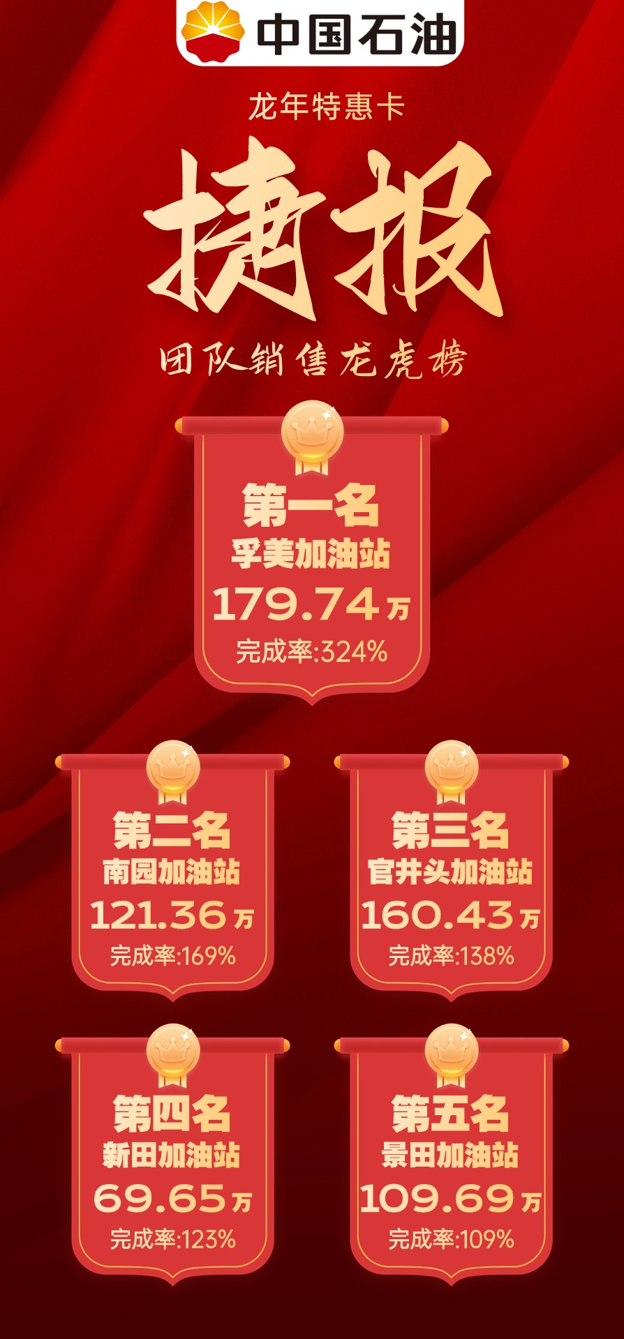1月1日至31日,零售事業(yè)部開展了油非互動(dòng)龍年特惠卡銷售比武活動(dòng),各油站高度重視此次銷售比武活動(dòng),全體員工銷售熱情高漲。在各油站員工的積極努力下,比武活動(dòng)共完成了1332.77萬元的銷售業(yè)績(jī)。其中,孚美加油站以179.74萬元的銷售業(yè)績(jī)獲得第一名。