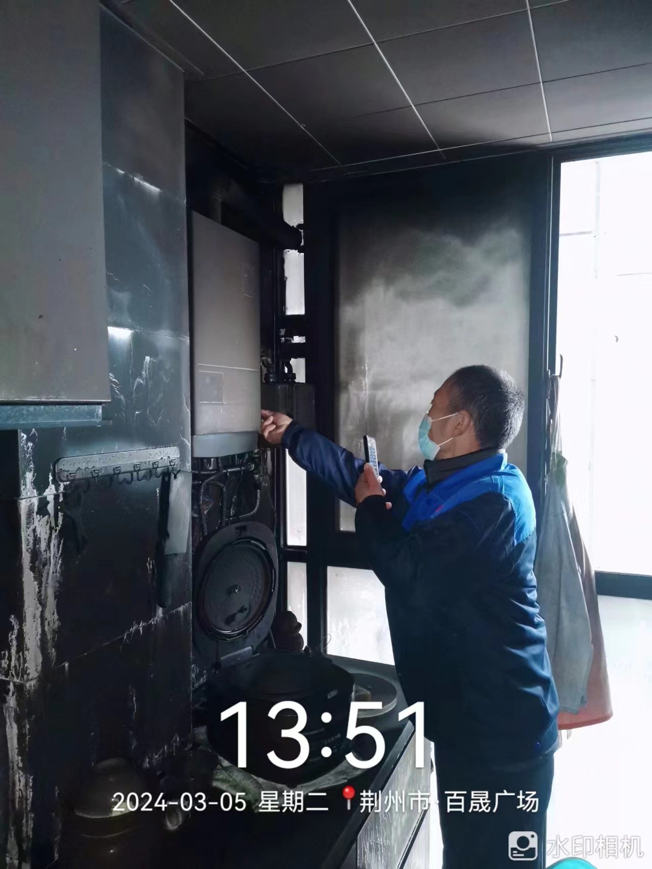 3月5日中午12:55,湖北百晟首府小區(qū)物業(yè)中心接到9號樓2單元業(yè)主反映樓棟有一股燒焦的味道溢出,物業(yè)中心迅速響應,安保巡邏人員文榮華和胡明茂立刻前往現(xiàn)場,發(fā)現(xiàn)火災點位于9-2-1201,廚房陽臺窗戶縫隙冒出了黑煙。物業(yè)中心立刻通知業(yè)主,并第一時間報警。